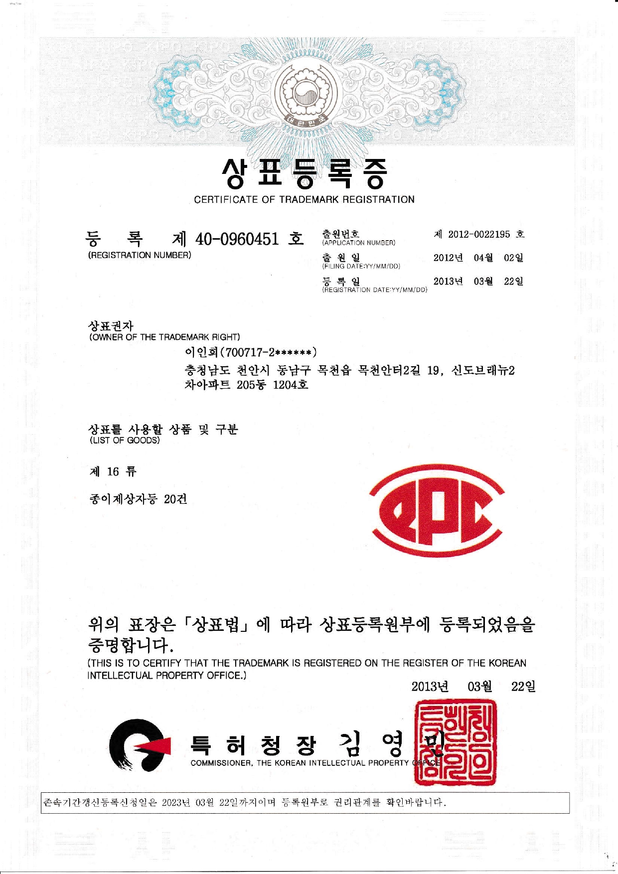 상표등록증 (PPC)