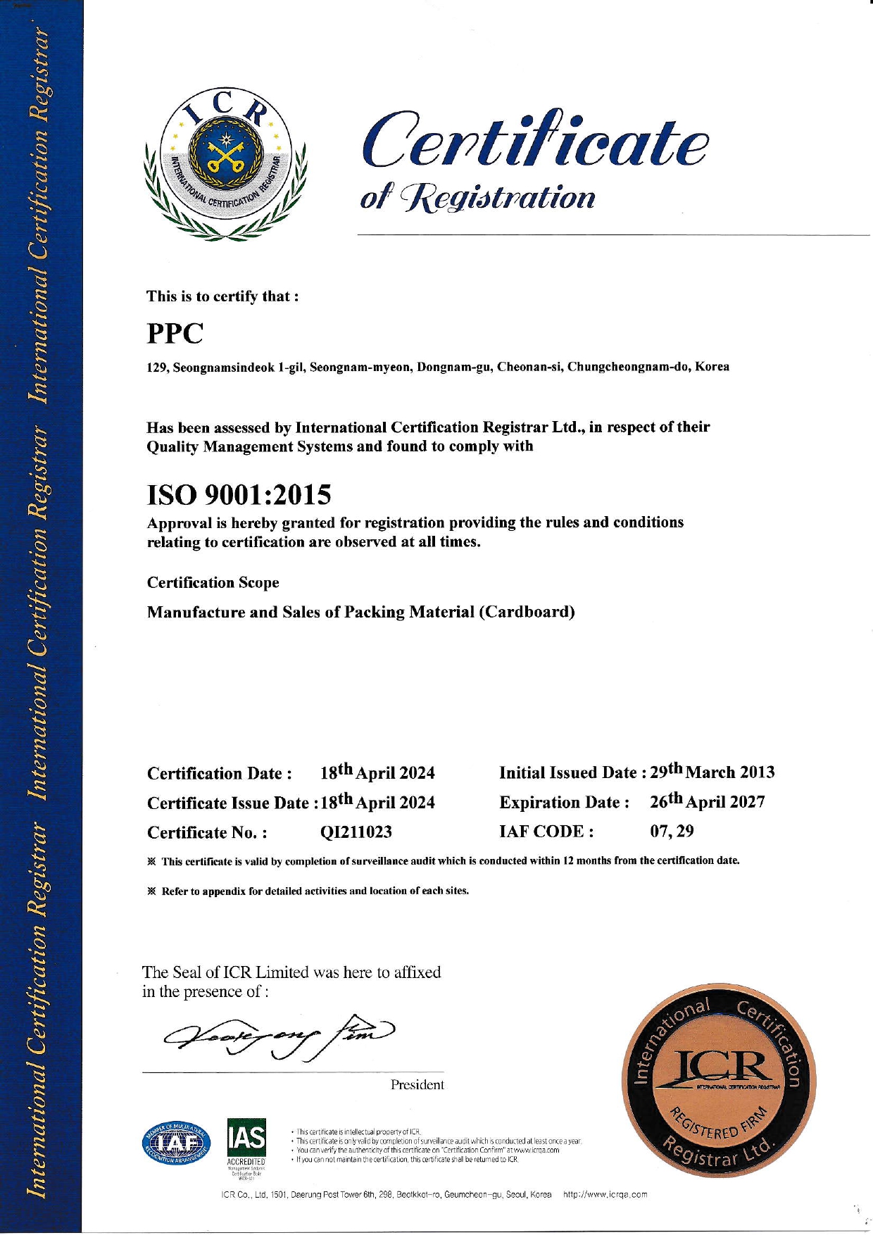 ISO 9001 품질경영시스템 인증